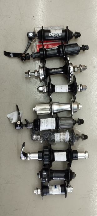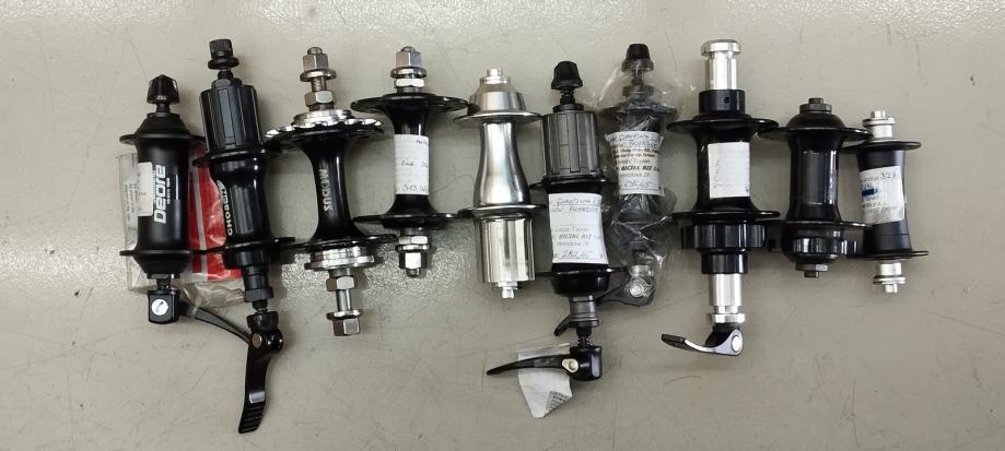 Sve vrste novih glavčina ili naba za kotače od 24-36 žbica prodajem. Cijene su već od 9 Eura za prednju glavčinu s punom osovinom, pa sve do 99 Eura za stražnju glavčinu Formula s 28 rupa za ravne žbice.