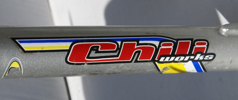 Fotografije 1. - 7. Vilica CHILI WORKS za sportski bicikl s amortizerima za bicikl 26 cola. Hod amortizera oko 90 mm. Mogućnost montaže V-brake kočnica ili disk kočnica na ušice koje se nalaze na zadnjem dijelu vilice. Vilica je u odličnom stanju – vidljive ogrebotine na pojedinim mjestima. Dužina vrata na vilici je 170 mm. a promjer cijevi u koju dolazi nosač upravljača 22.2 mm. CIJENA ZA VILICU JE 30 €