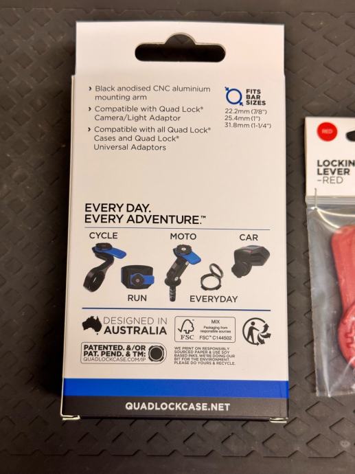 Prodajem potpuno novi NE korišteni Quad Lock sistem držac za mobitel, navigaciju, kameru “Out Front Mount” Vrhunska kvaliteta i jednostavnost priključka.