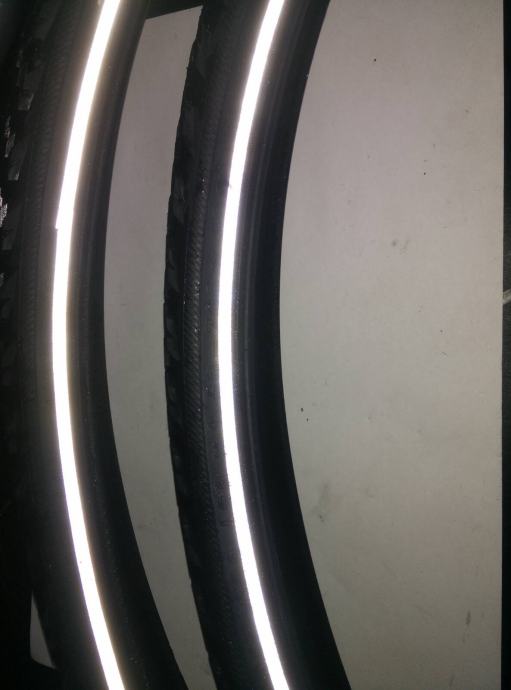 Prodajem praktički nove stavljene i skinute gume bez ikakvog traga na sebi za cestovne bicikle. Imaju jače ripne tako da nisu samo za cestu nego i malo offroad. Sastrane imaju reflektirajuće trake vidi se na slici.