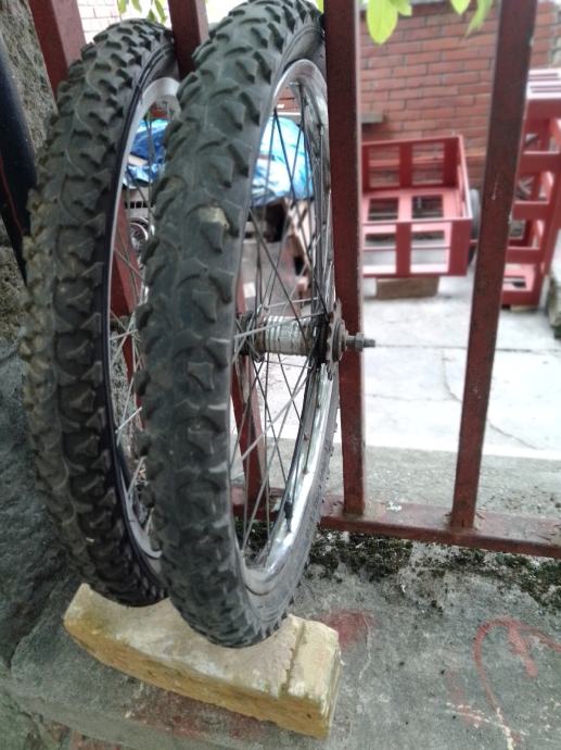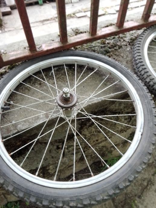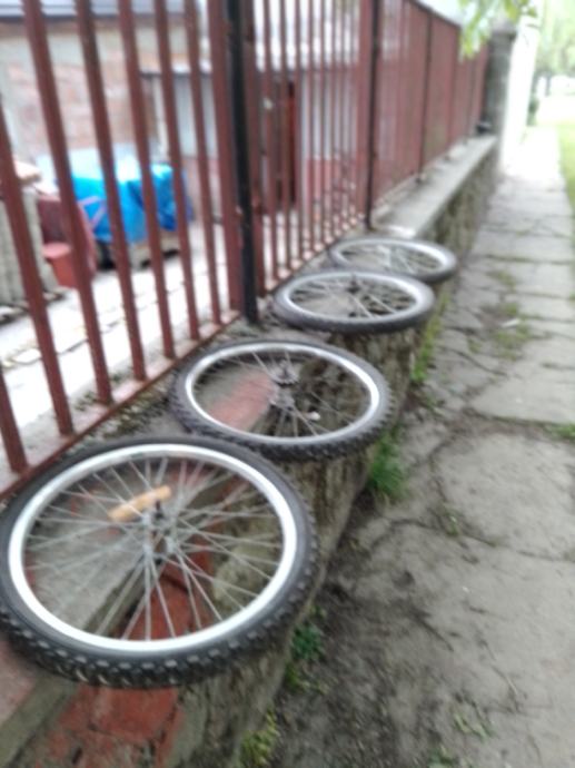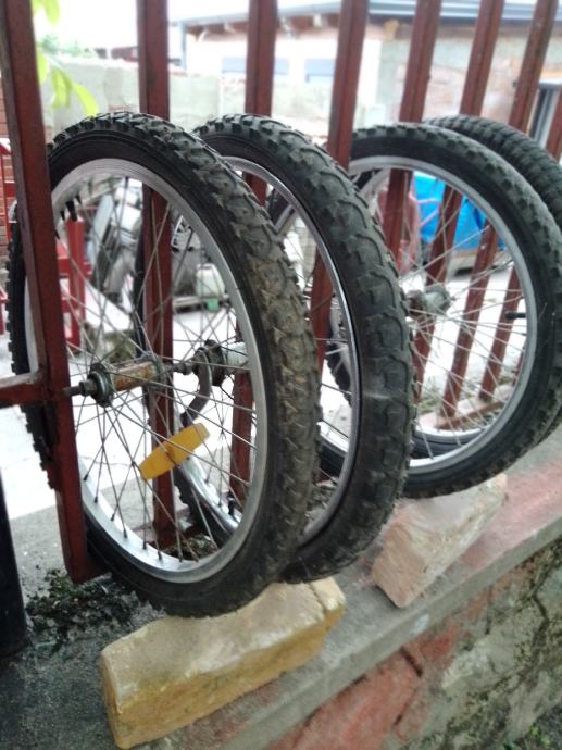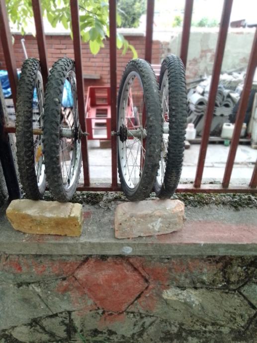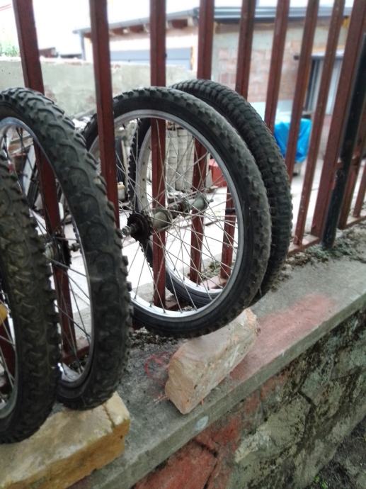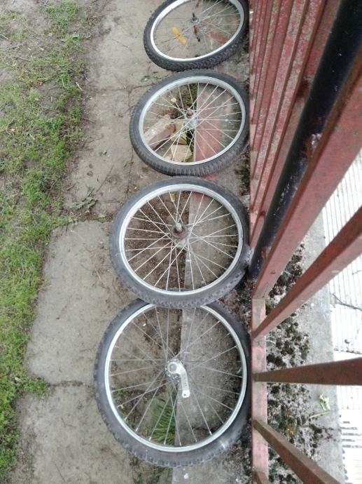 Točkovi 2 prednja 2 zadna svi 20 cola .komad 15€ ,komplet može za 50€.Šaljem poštom uplatom na moj tekući račun+ troškovi poštarine.Jedan zadnji (željezni sa polugom kočnice )je prodan .