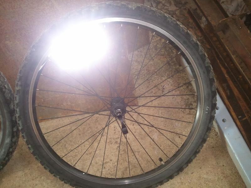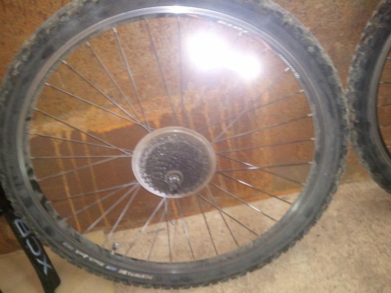 alexrims ID19 kotači, 26'' , 32 žbice sa fuji 10 nabama i zadnj kotač sa kazetom shimano deore 9 brzina i za gumama s schwalbe black jack 2.5 prednja na 80 posto zadnja na 40 posto... i sa zračnicama... cijena sa felgama gumama i kazetom za komplet cijena 400 kn