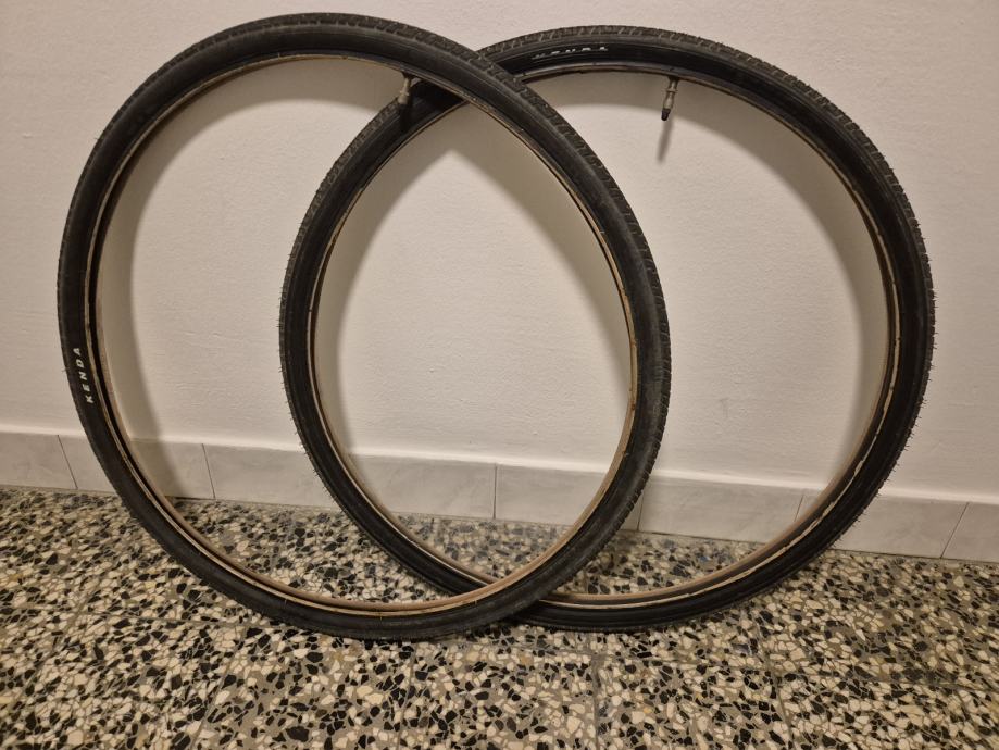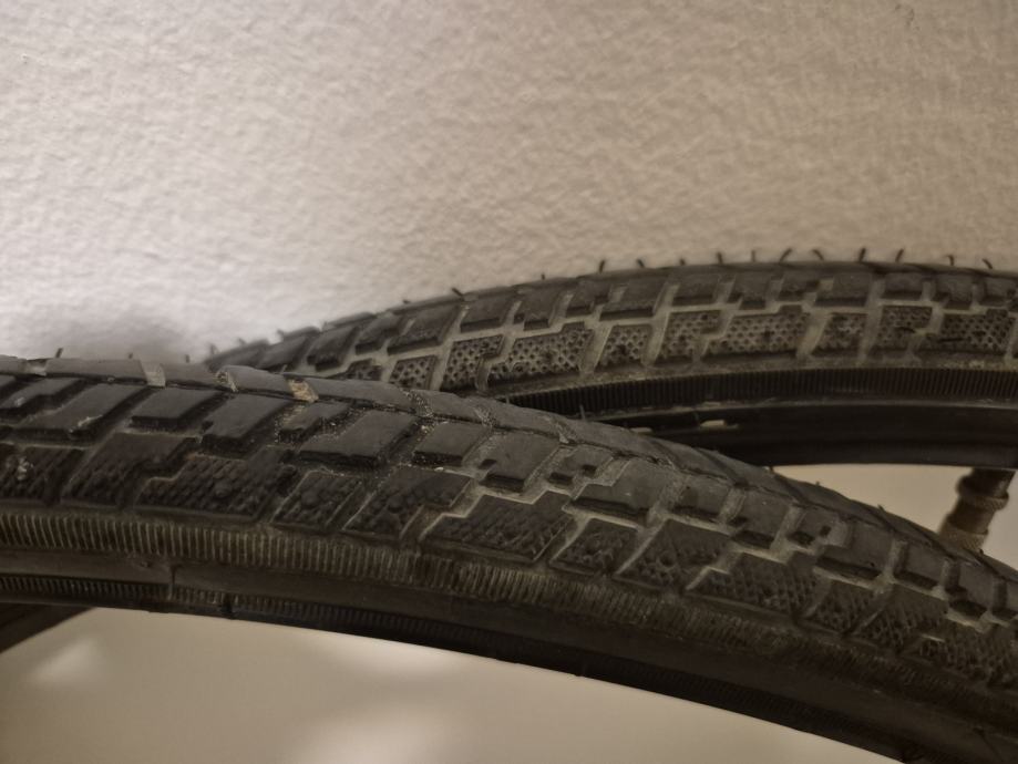 U solidnom sanju. Nisu uopće ispucale, gazni sloj gotovo netaknut. Za one koji možda ne znaju...dimenzija 26" x 1 1/4- 1 3/8 je nešto većih dimenzija u promjeru od 26". Na poklon i unutarnje gume.