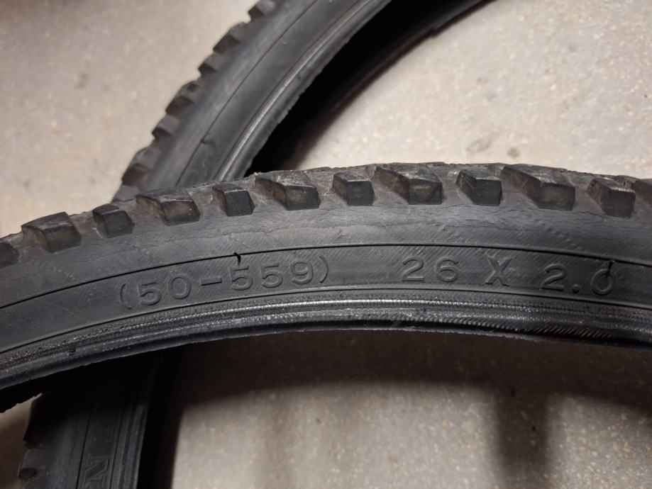 Gume za brdsku biciklu, 26x2.0 korištene ali u dobrom stanju bez oštećenja. Cijena 5 Eura komad.