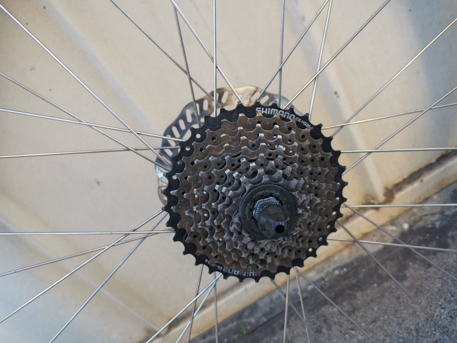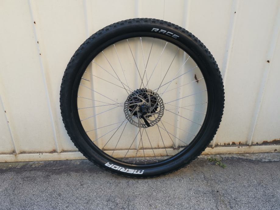 U super stanju bez vidljivih znakova potrošenosti. Guma Merida u vrlo dobrom stanju. Disk Tektro 160mm s puno mesa.