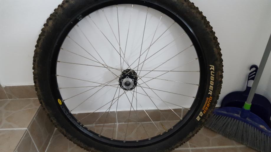 Prodajem prednji kotač mavic ex325 sa fireeye 20mm nabom (u nabi su industrijski ležajevi) i continental rubber queen gumama. cijena 450 kn , bez gume 350 kn.