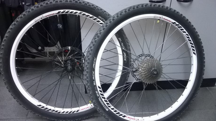 Prodajem kotače 26" obruči Mach Magma 36 rupa, stražnja naba Fireeye excelerant 6 bolt industrijski ležajevi, prednja naba Quando 6 bolt, kotači su jako malo voženi (500 km) po gradu, potpuno ravni i neoštečeni, nabe nemaju luft i odlično se vrte, cijena je bez rotora i kazete!