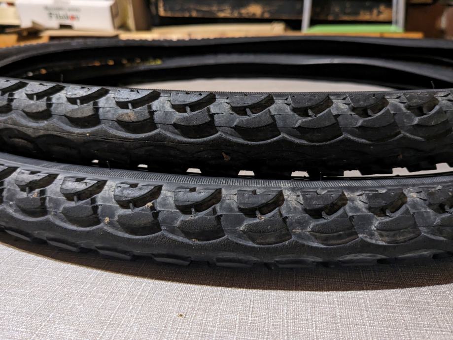 Korištene, stare, ali mogu još poslužiti za gradsku vožnju. Profil je dobar na oba dvije, ali pokazuju svoje godine na bočnim stranicama. Prodajem jer sam stavio gume za XC (Continental Cross King).
