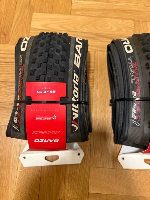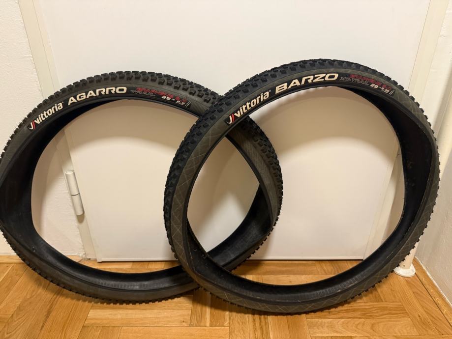 Prodajem odlično očuvane gume za bicikl: Vittoria Barzo 29x2.35 i Vittoria Aggaro 29x2.6. Kvalitetne MTB gume, imaju odličan profil za različite terenske uvjete. Idealne za brdski biciklizam, s dobrim prianjanjem i izdržljivošću.