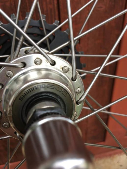 VINTAGE Kotači L Eroica 36 h nirosta žbice/ spoke 2 mm - Felgen/rims clincher SA silver/anodized MAVIC MA 2 - Spacing 100/126 - Rear/Zadnji kotač SHIMANO 600EX - FH-6207- UG - UniGlide cassetten 6 speed/index/frikcija - 14-16-18-20-23-26 - Vork/prednji kotač Shimano naba- HG-50 - handmade velo2grga 99% centrirano, križ 1 preko 3 žbice DT Swiss 2 mm nirosta/nehrđajuće - Cijena bez kazete - Miro 098 529 693 velogrga.1949@gmail.com