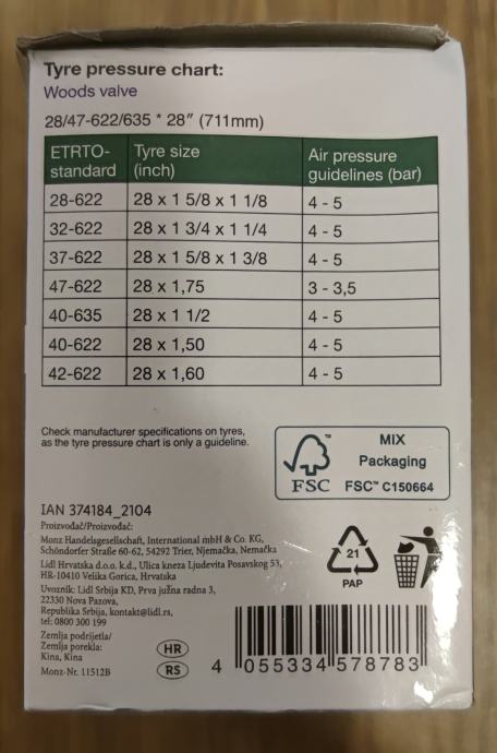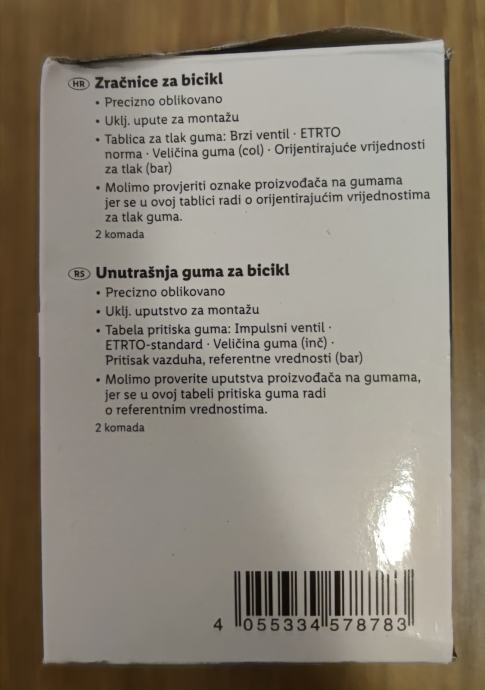 U pakiranju dvije zračnice, dva pakiranja, četiri gume total.
