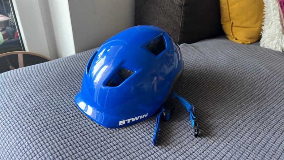 Prodajem potpuno novu biciklističku kacigu za djecu veličine 48-52 cm. Plava BTwin kaciga je udobna i sigurna, s kvalitetnim unutarnjim jastučićima i prilagodljivim remenjem. Idealna zaštita za vaše dijete tijekom vožnje biciklom ili romobilom.