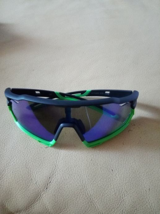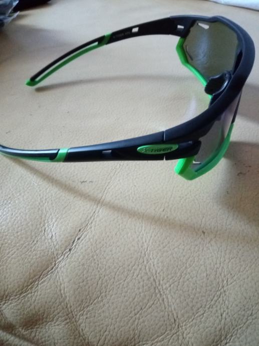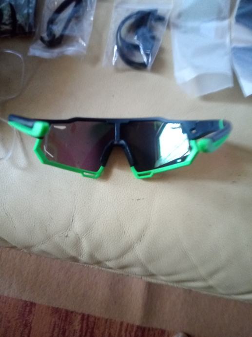 Nove naočale za biciklizam, trčanje, nautiku i sve vanjske aktivnosti. dolaze u kompletu sa 4 leće, blak sa polarizacijom, prozirnom, zeleno plavom i photochromatic lećom koja mjenja boju zavisno o količini svjetlosti od prozirne do sive. Podešavajuće gumice oko nosa, okvir za naočale za vid,, dodatni učvrščivači iza ušiju i dodatak s donje strane leće koji se može skidati , kontakt poziv ili njuškalo poruka.