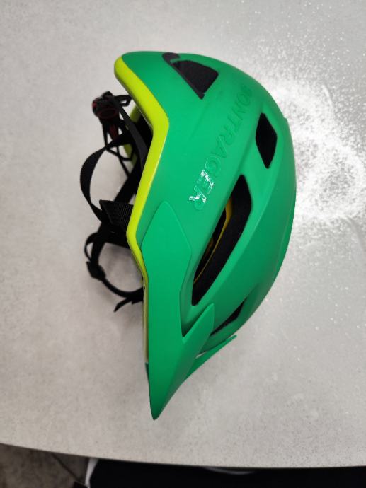 Kaciga je veličine 54 - 60 cm, zelene boje.