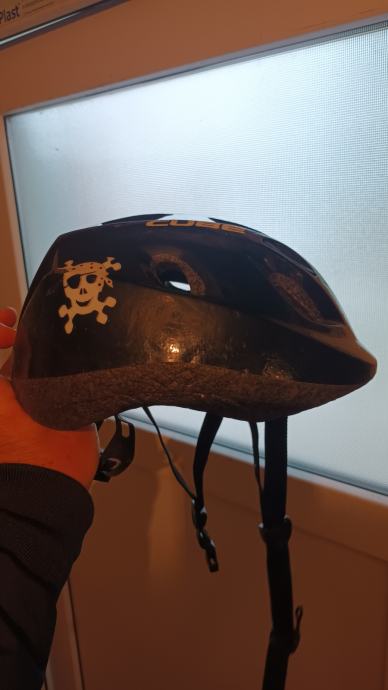 Odlična dječja kaciga sa sitnim oštečenjem zatezača.