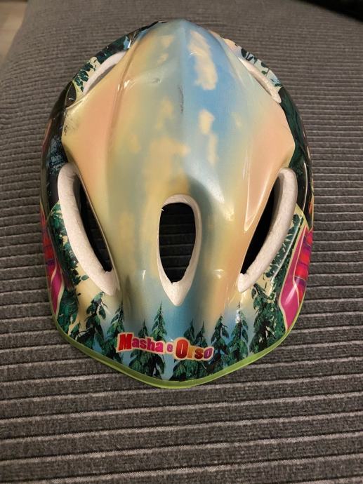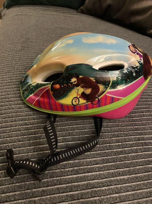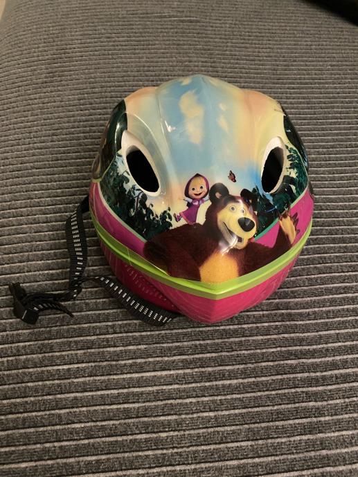 Prodajem Maša i medvjed kacigu za vožnju biciklom ili koturanje. Super očuvana i bez oštećenja. Primjerena za djecu stariju od 3 godine. Podesiva veličina od 52 do 56 cm.