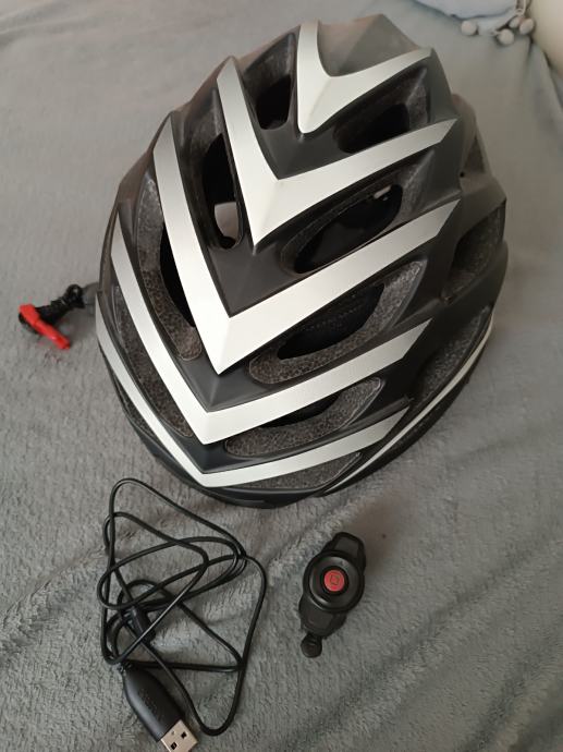 Pametna biciklistička kaciga nošena svega 3 puta. Veličina L. Ima ugrađena zadnja svijetla i žmigavce. Također ima zvučnike i možete slušati glazbu bez slušalica u ušima. Možete se povezati sa drugom osobom koja koristi pametnu kacigu te komunicirati s njom poput woki-tokija, a može se povezati sa aplikacijom na mobitelu. Dolazi sa daljinskim i kablom za punjenje na magnet. Upute sam na žalost negdje zametnula, no sve se može naći na webu. Za sva dodatna pitanja stojim na raspolaganju.