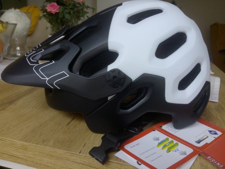 Prodajem novu enduro trail kacigu za brdski biciklizam. Za veličinu glave od 56-62cm. Vizir se može podesiti. Rađena po licenci Bell-a. Lokacija: Zagreb, zapad. Moguće slanje po dogovoru. Kontakt poziv, sms, viber, whatsapp.