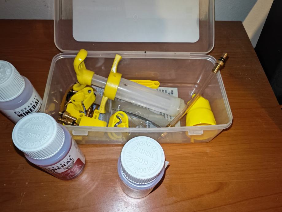 Komplet alat za odzračivanje svih bicikl hidrauličnih kočnica Sram Shimano Magura Hayes Formula Hope + 2x60ml mineralno ulje, korišteno par puta potpuno funkcionalno