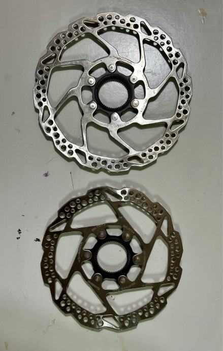Rotori skinuti s novog bicikla, sa minimalnim znakovima korištenja.