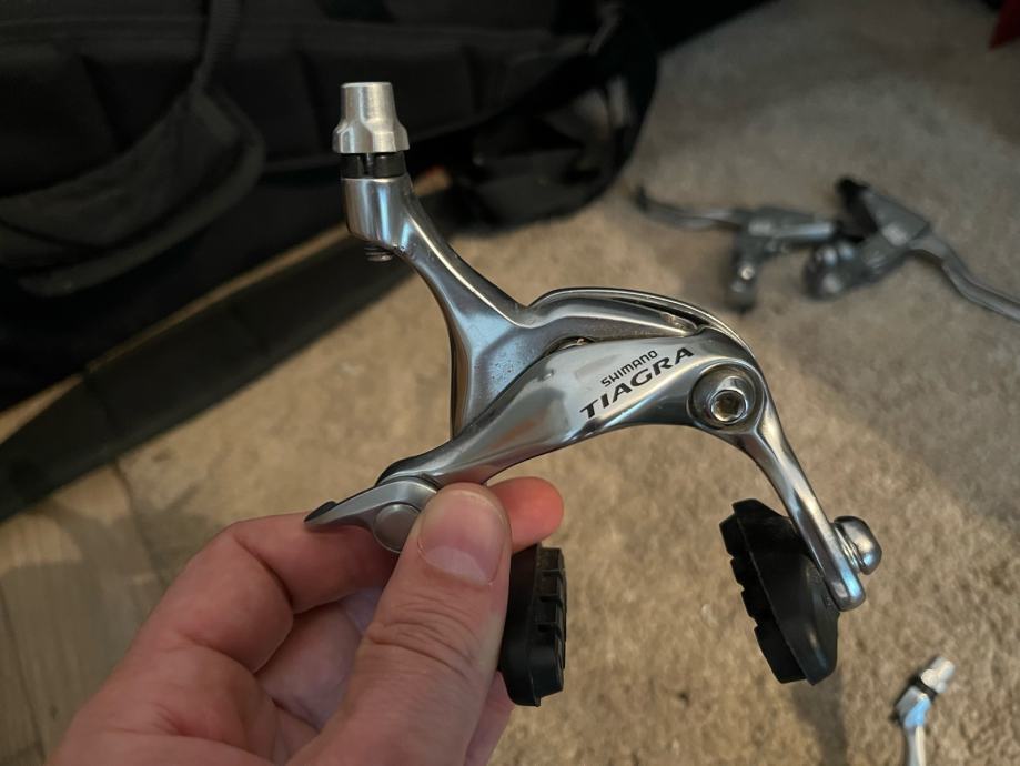 Shimano BL-4600 ručice kočnica za ravni volan i čeljusti BR-4500 s novim paknama, rabljeno u jako dobrom stanju.