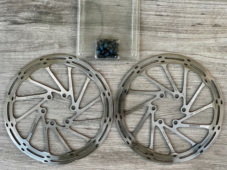 Prodajem 2 komada Sram CENTERLINE kočionih rotora. Rotori su kao novi, skinuti s novog bicikla na kojemu su korišteni kraće vrijeme.