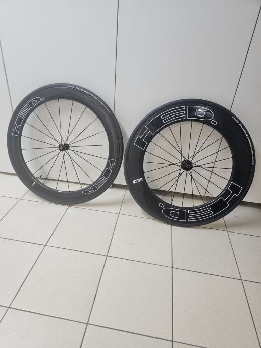 Prodajem karbonske kotače HED 60/80mm, klinčer, rim brake. Freehub campagnolo. Nabe novatec. Gume vitorija Rubino pro 700x25. Kotači su prešli max 200km
