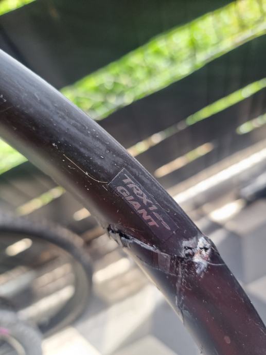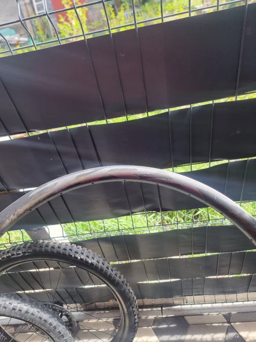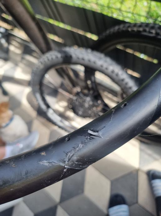 Kao sto se vidi na slikama obruc ima ostecenje na dva mjesta,reparacija je moguca i kostala bi nekih 100e (tako kaze majstor u slo) pa ako se nekome da igrat s time moze dobiti karbonski obruc za malo novaca