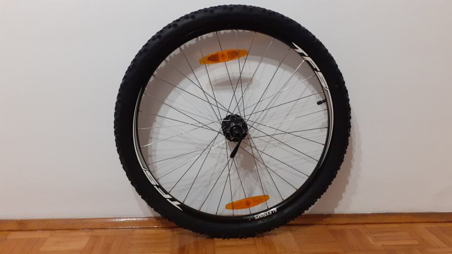 - prednji kotač u IZVRSNOM stanju, Shimano HB-M475 naba, QR, 32 žbice, zračnica, vanjska guma IRC 2.10F Mythos XC II