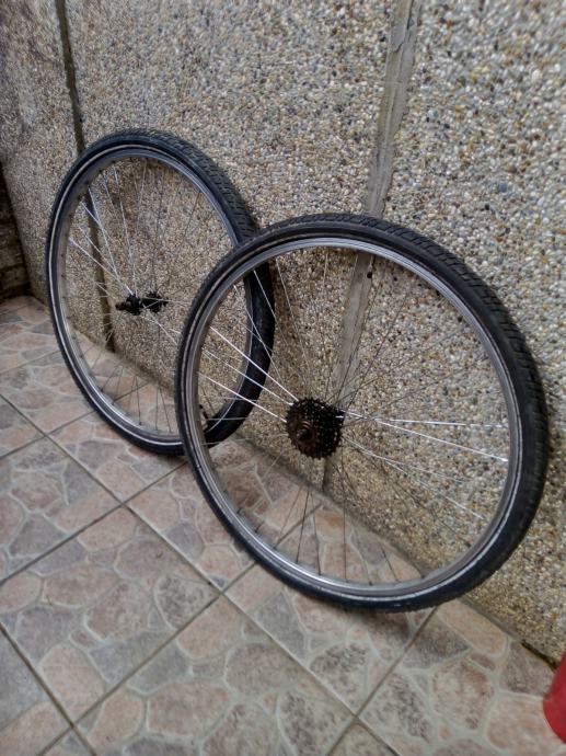 Kompletni kotači prednji i zadnji veličine 28" ispravni sa šest brzina i dobrim gumama povoljno prodajem.