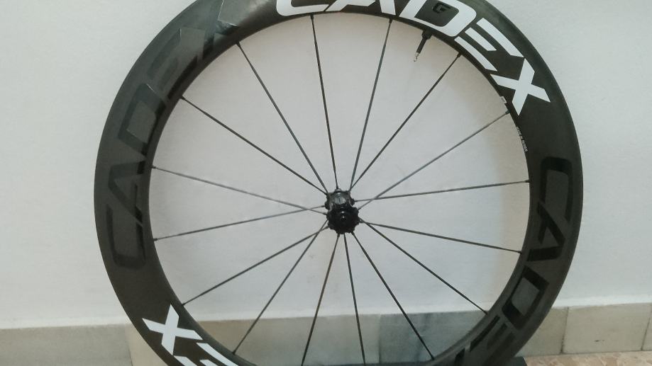 Prodajem kotače Cadex za cestovni bicikl.Shimano hub.Dubina profila je 65mm za obručne kočnice dobvaju se zatezači i rezervni set pakni malo voženi. Ne šaljem poštom.