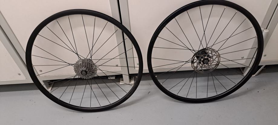 Par aluminijskih kotača, potpuno novi, 28" za Triban specijalku RC 520 sa disc kočnicama. Naba sa 11 brzina, nedostaju jedan disc i quick relese obje kopče. 098 706 999 Zagreb