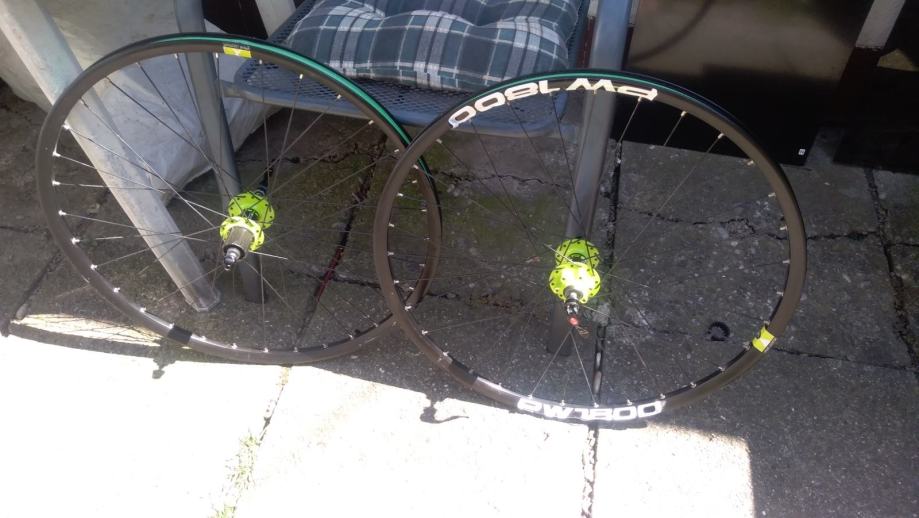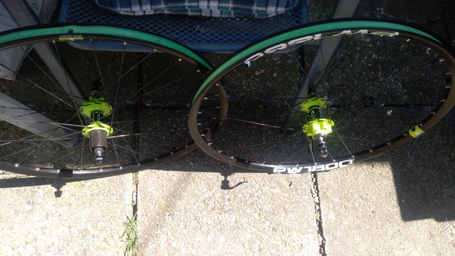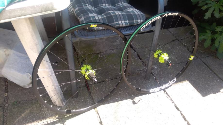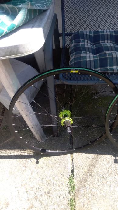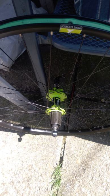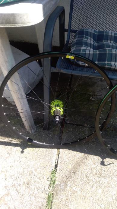 DT SWISS XPW1800 kotaci 26", idu sa DT SWISS QR osovinama, jako lijepe zelene DT SWISS ZELENE nabe 6bolt, izuzetno lagani i vrte se zauvijek, naljepnice malo "zguzvane" - bez ikakvih ostecenja te za to i sluze - da kotaci ne dobiju po piksi i u konacnici lako ih je zamijenit ako netko zeli dok obruce bas i nije, cijena je zbog navedenog max spustena 225E te je fixna i zadnja