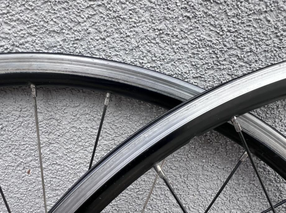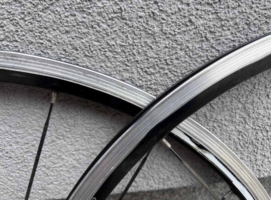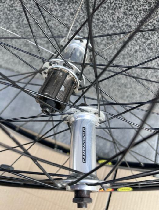 Desno - Mavic CXP33, Campagnolo nabe..na stražnjem kotači tri žbice nisu original, ali kotac je ravan, i kočiona površina mu je lagano načeta. Prednji je sasvim okej - 90€