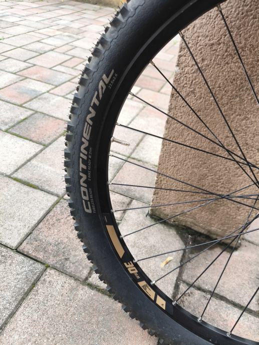 Prodajem prednji kotač 27.5 skinut sa nove bicikle. Naba 110/15 boost Shimano, obruč Haibike 30mm, guma Continental 27.5x 2.6