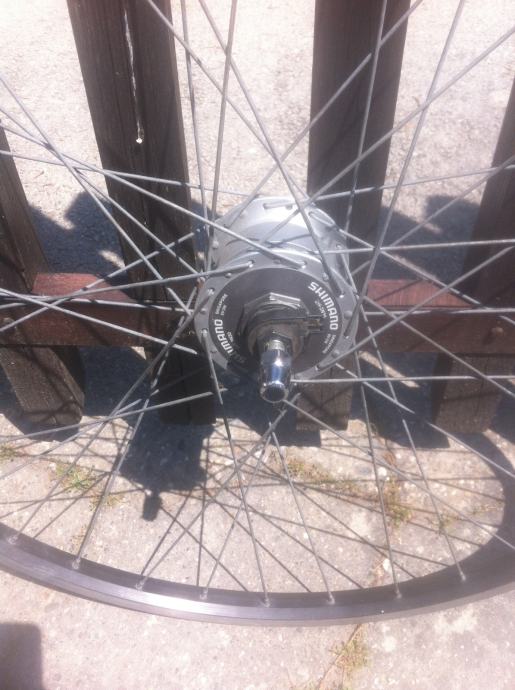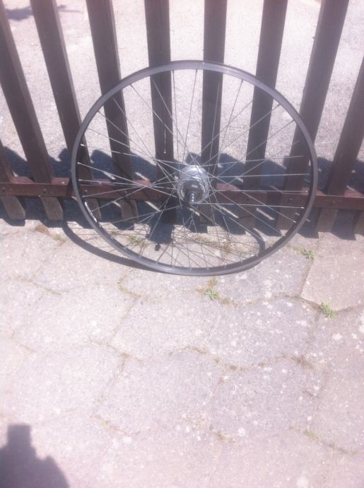 Prodaje se prednji kotač 26" za V-brake kočnice s nabom koja ima ugrađen dinamo.