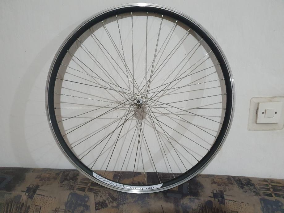 Prodajem prednji kotač za bicikl, potpuno nov. Kotač ima crnu felgu s metalnim glavčinama i standardnim žbicama. Pogodan za različite vrste bicikala.28"