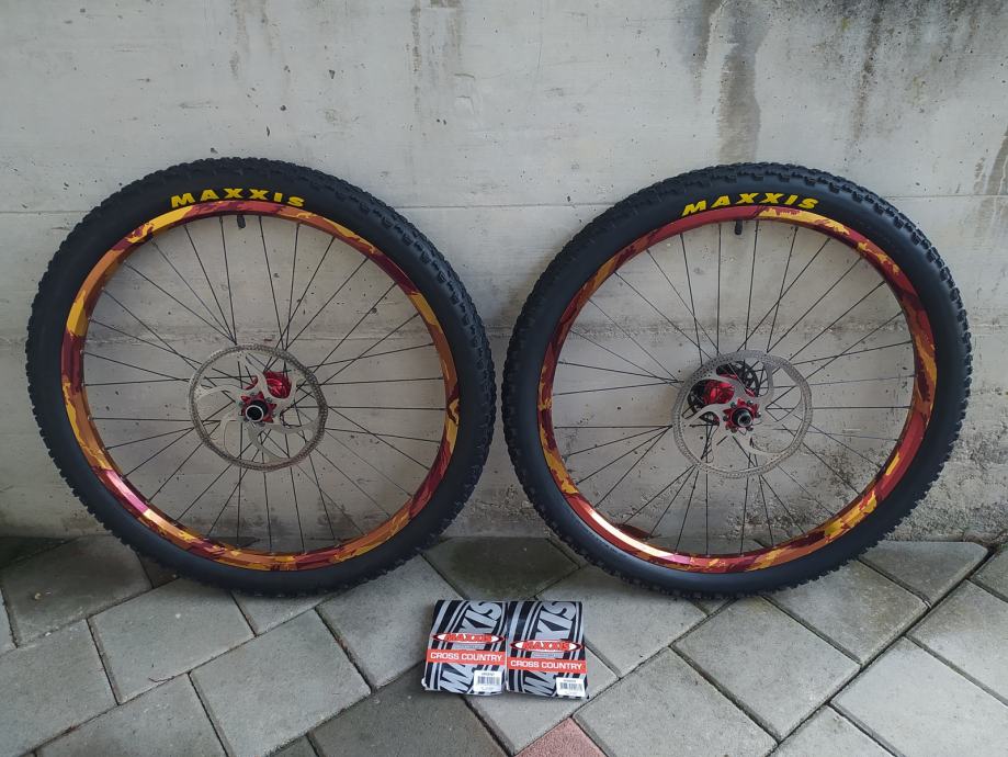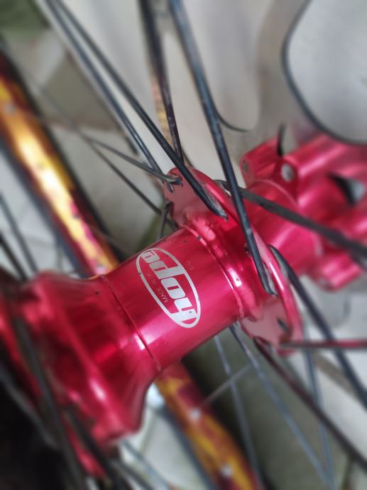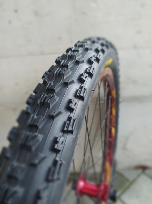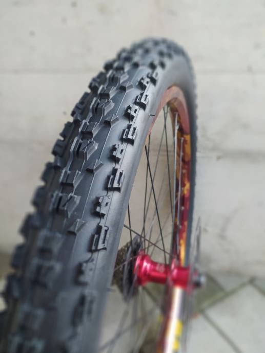 Prodajem set kotaca 26" Hope Pro2 Evo. Sve vidljivo na slikama. Prednji kotac boost 20 x 110 mm (sa adapterom 15 x 110 mm), straznji 12 x 148 mm. Diskovi Avid 200 mm. Nove gume Maxxis Ardent. Kazeta Sram 7S. Cijena fiksna.