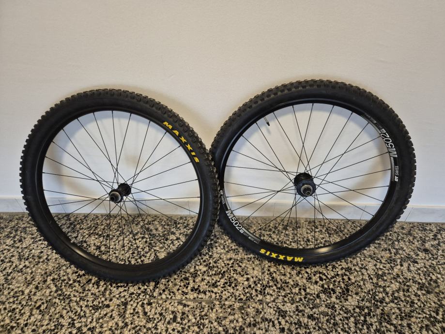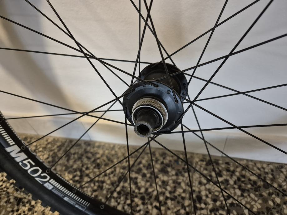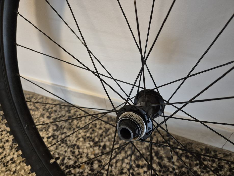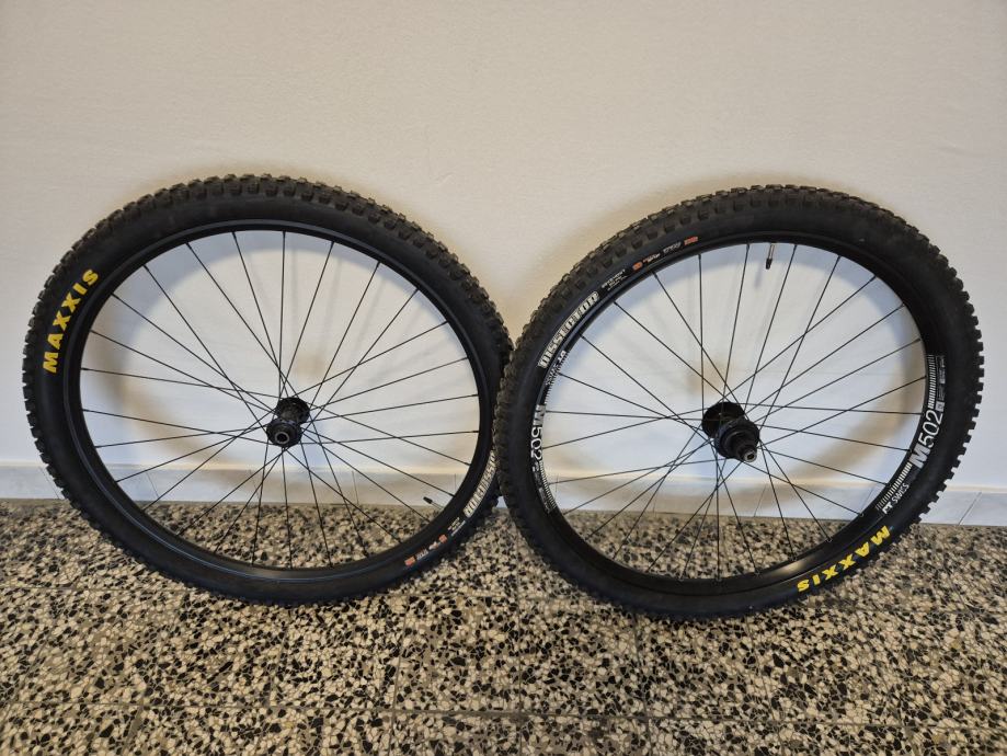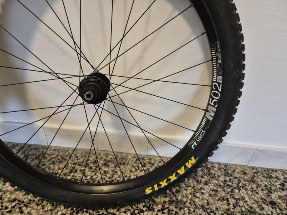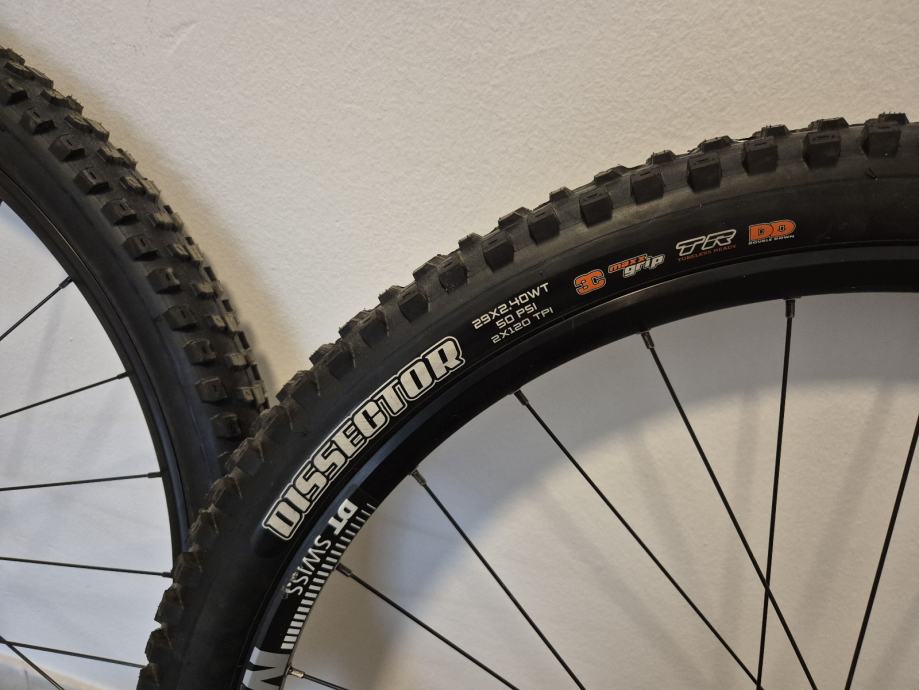 Stražnji kotač ima DT Swiss obruč, Shimano glavčina 12x148mm, centerlock disc, vanjska guma Maxxis Disector 29x2.40", unutarnja guma Joe's no flats.