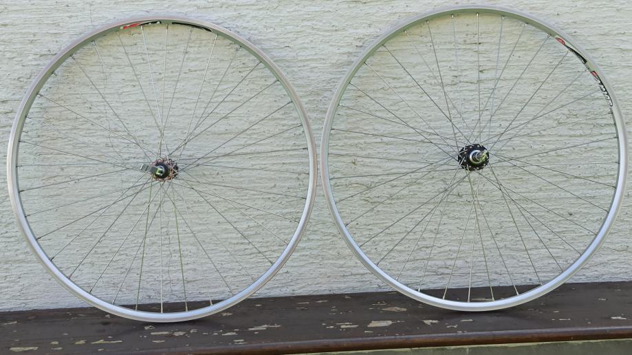 RIMS/FELGEN brake/bremse - RIGIDA France - silver/argent double wall 17-622 etrto 36h težina 550 gr.- žbice silver/nirosta 2 mm -Prednji kotač Hub/Naba Shimano S T X HB-MC32 grau anodized- osovina 9mm, težina 1050 gr.- Zadnji kotač HubNaba SHIMANO FH-RM30 crna, osovina 10mm - za kazete 8-9-10- speed -težina 1300 gr.- sa QR stezačima - OLD spacing 100/130 road race ili 100/135 treking/cros - handmade velo2grga 99% centrirani kotači - Idu gume 25mm do 37 mm širine 28" 622 - Za vozače do 120 kg. težine - Miro 098 529 693 velogrga.1949@gmail.com