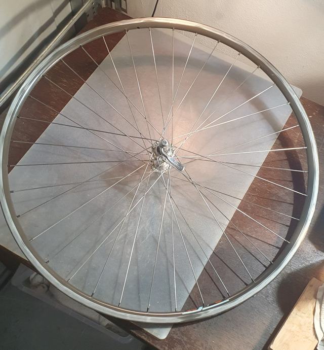 Prodajem vintage cestovni kotač sa 36 žbica za tabular gume. Naba Dura Ace felga Wolber. Vrlo čvrst, bez oštećenja, vrlo malo vožen. Ležajevi u vrhunskom stanju.