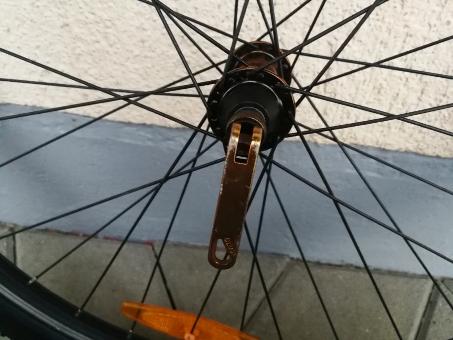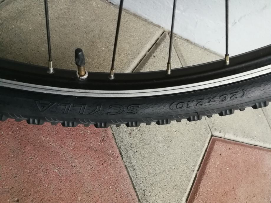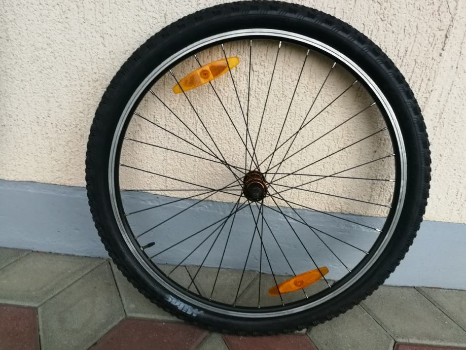 Guma na kotaču je 26x2,1, mačje oči, i brzi stezač kotača.