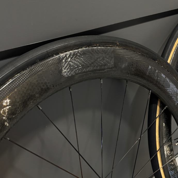 Stražnji obruč je profesionalno popravljen.