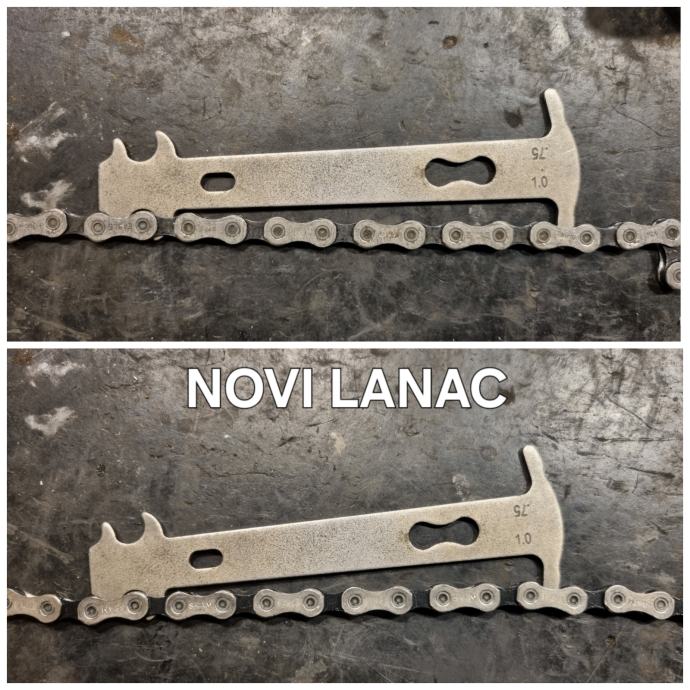 Prodajem navedeni lanac. Malo je vožen, minimalno potrošen. Koliko je potrošen u usporedbi sa novim lancem može se vidjeti na fotki u prilogu.