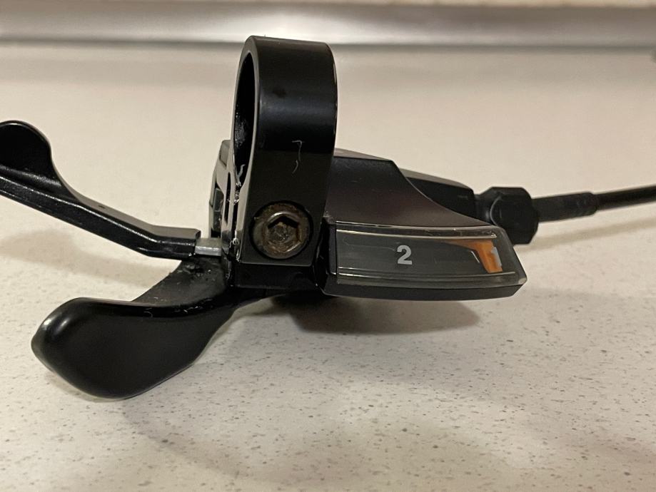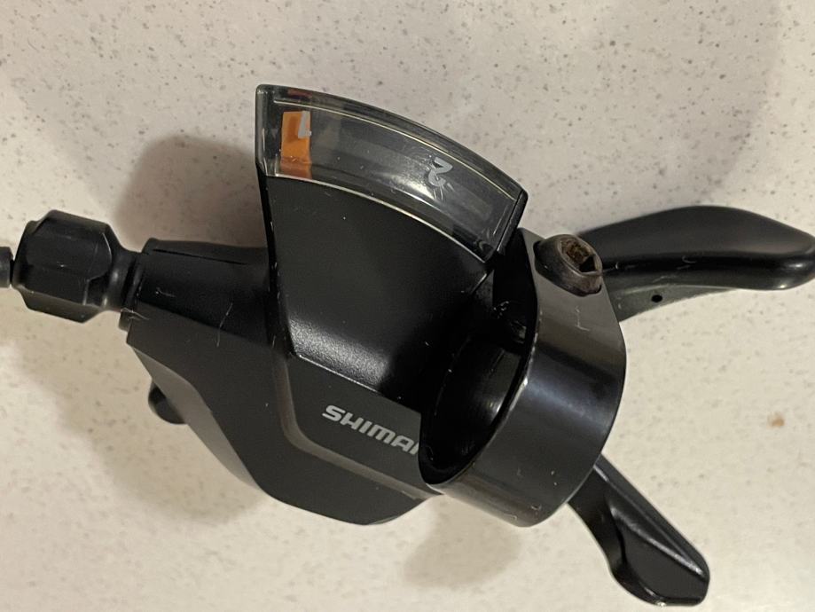 Shimano SL-M315, s bužirom i sajlom. Ispravan, demontiran zbog prijelaza na x1 sistem.
