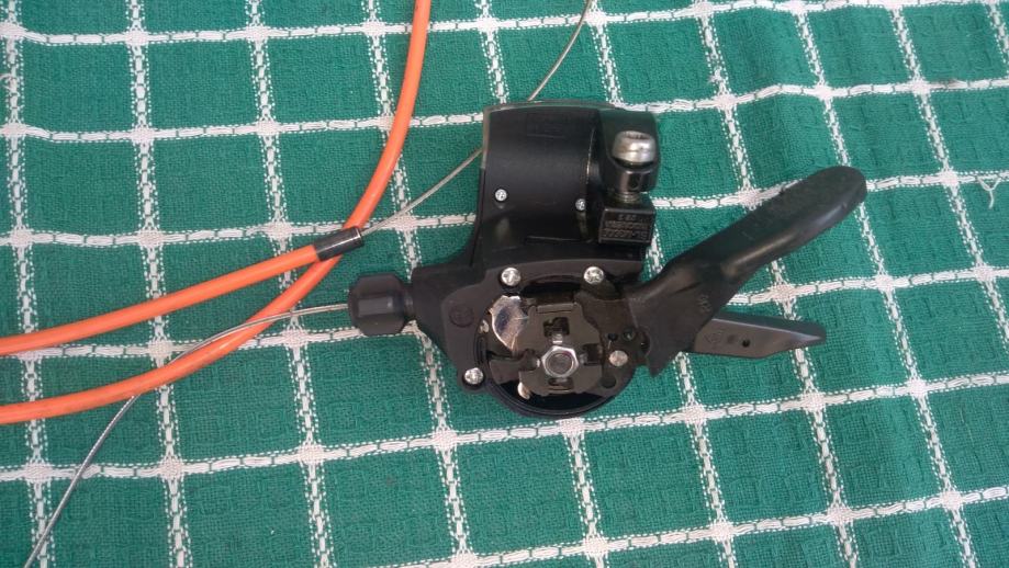 Acera 9x straznji shifter, sajla, lijepi narandzasti buzir gratis ozbiljnom kupcu, brz, lagan, mehanicki kao nov - jedino fali poklopac s donje strane (poslikano) te je zbog toga cijena max spustena 15E te je fixna i zadnja, ne utjece nikako na nista, ali da se zna. (5-6)