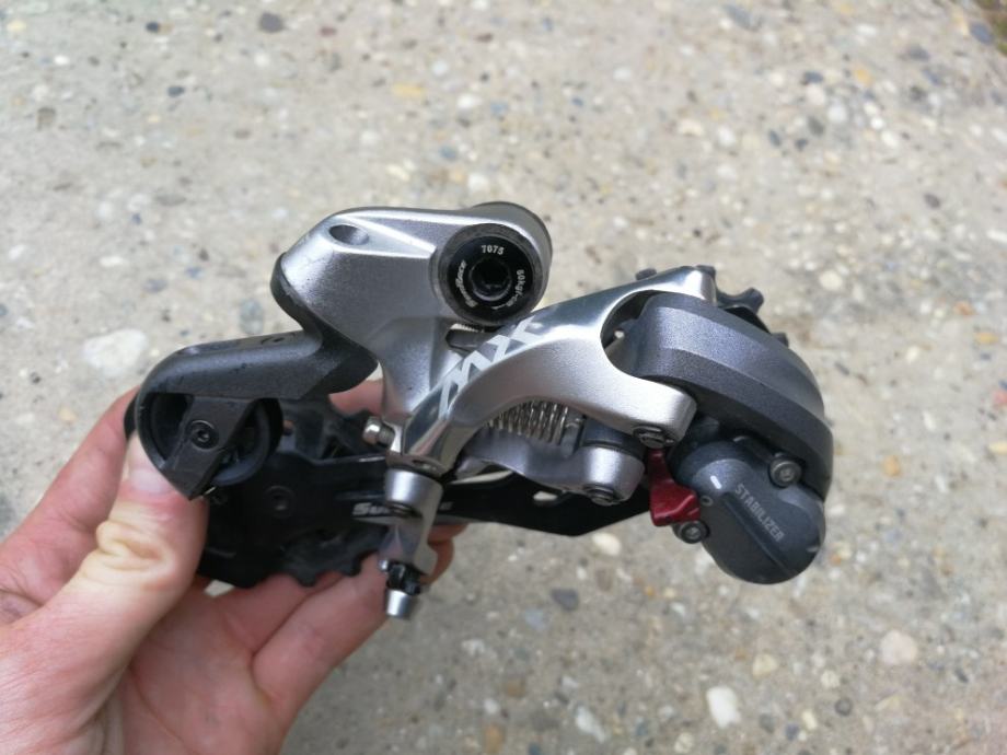 Prodajem stražnji mjenjač Sunrace RDMX60 MD, slabo korišten no nažalost pukao je dio označen na zadnjoj slici. Može se posebno kupiti taj dio, ja ga prodajem jer sam kupio novi mjenjač.