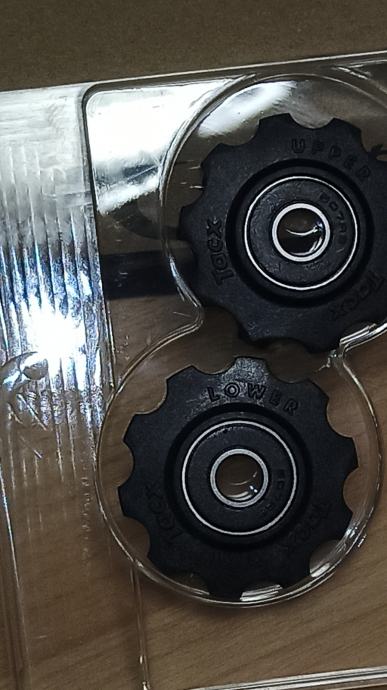 2 piece/kom - black Upper/Lower -- A Shimano 8, 9,10 &11 speed -- B Shimano 7 speed, Campagnolo 8 speed -- C Campa 9, 10 &11 speed -- Kotačići za zadnji mjenjač, Original u kutiji, sa 16 plastik podloškama/adapterima ABCD - Može i za Vintage mjenjače Campagnolo, Huret, RINO, Simplex, Shimano - za 6 speed - standard ili compact kazete ili kranz - Designed and produced in the Netherlands - Može dostava HP ili Tisak paket + 2,5.- EUR po uplati IBAN - Miro 098 529 693