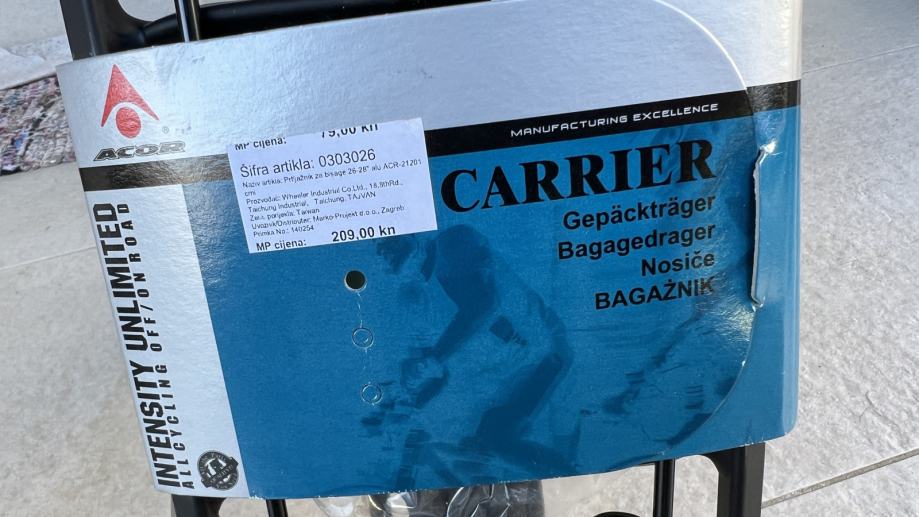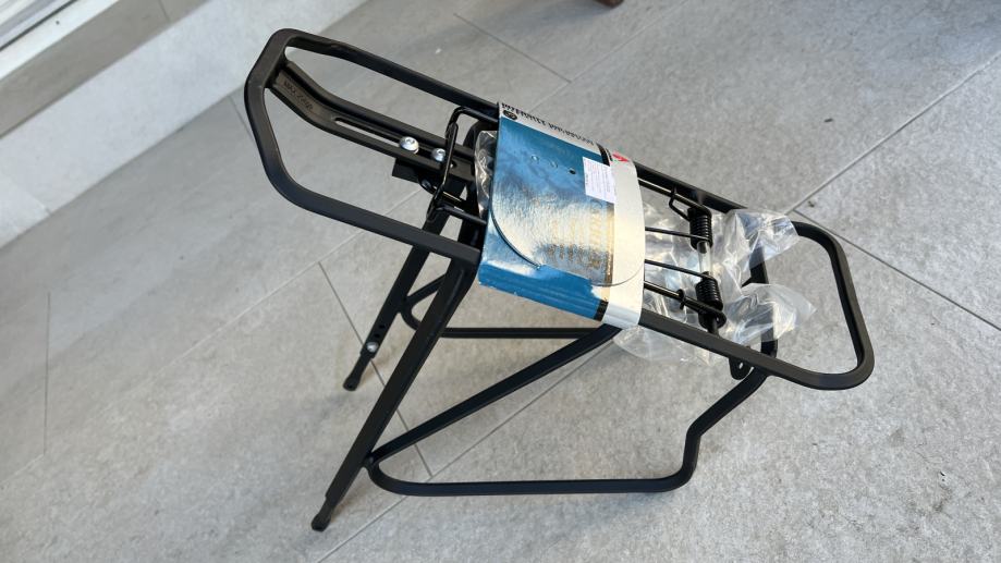 Potpuno nov crni aluminijski nosač / gepek za bicikl s kotačima 26" - 28", prodajem jer sam kupio krivi model koji ipak ne mogu namontirati na svoj bicikl, a nemam više račun da vratim/zamijenim. Platio 30 EUR, prodajem za 15.