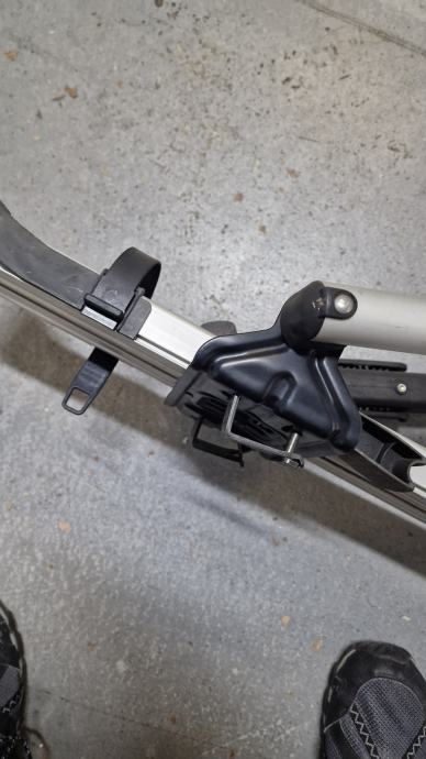Prihvat na poprečne thule aluminijske nosače auta sa T žljebom ili na čelične square nosače obuhvaćenjam profila max cca 32 x 22 mm.